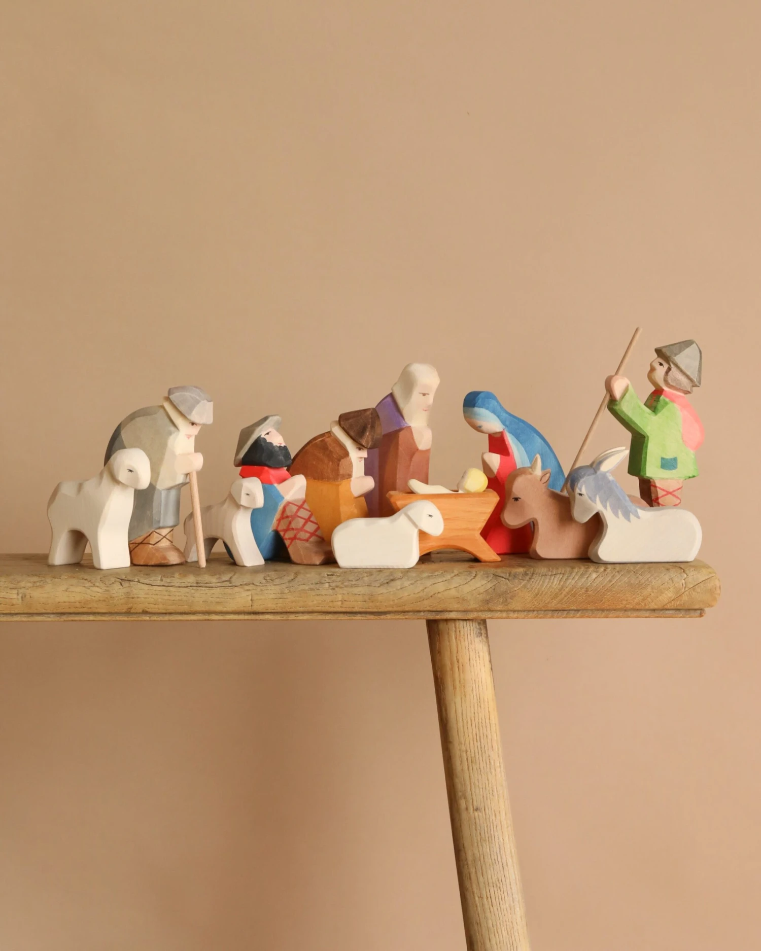 A great way to set up your child’s first Nativity scene. This set includes the original-style Holy Family, four Shepherds and three sheep, and an ox and a donkey. Use this set on its own, or add to it with the many other Nativity figures and Ostheimer animals. Makes a great present!